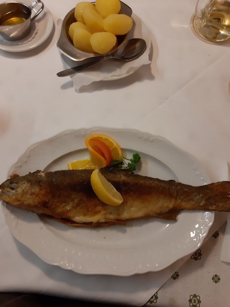 As for the menu, prepare your taste buds for an adventure! Each dish bursts with flavor, and recommendations from satisfied patrons include the incredibly smoky and tender smoked trout—lauded by Alex B as "one of the best" he has ever experienced. For those wishing to explore the core offering of the restaurant, you can choose from four different portion sizes of their signature trout dishes, ensuring that everyone can find just the right fit for their appetite. Customer C. M. praises the Mandelforelle (almond trout), saying that even the smallest portion was hearty and satisfying, leaving diners in a state of bliss.